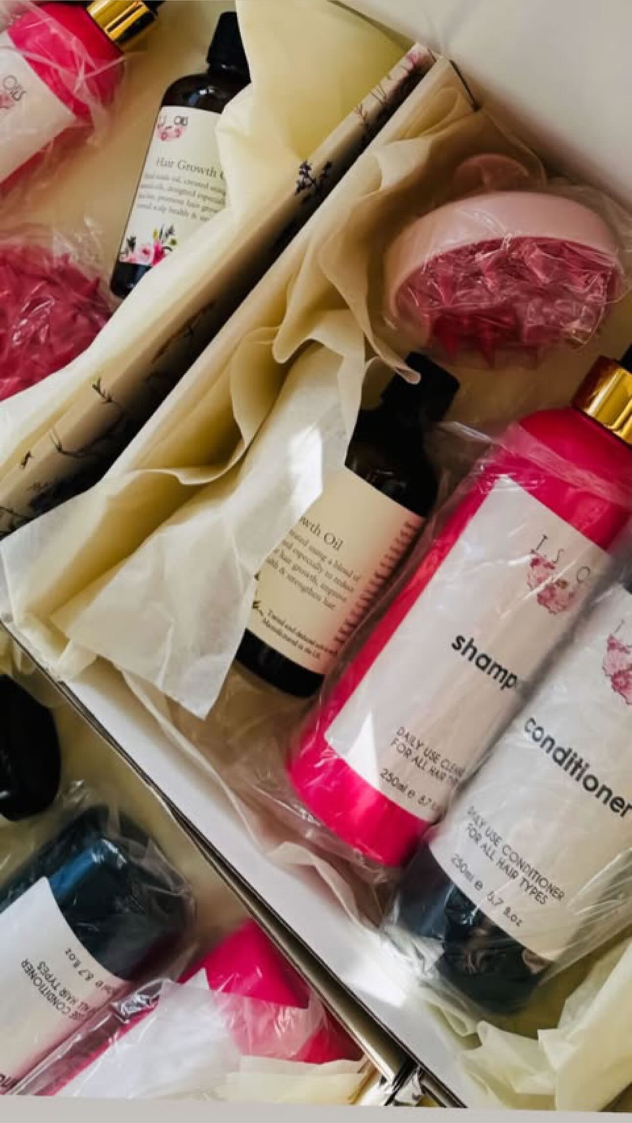 Products worth £90+, includes everyday shampoo, everyday conditioner, growth oil, scalp brush. Bradford orders will be delivered in a gift bag, other orders uk nationwide will be wrapped in our bundle boxes🎀